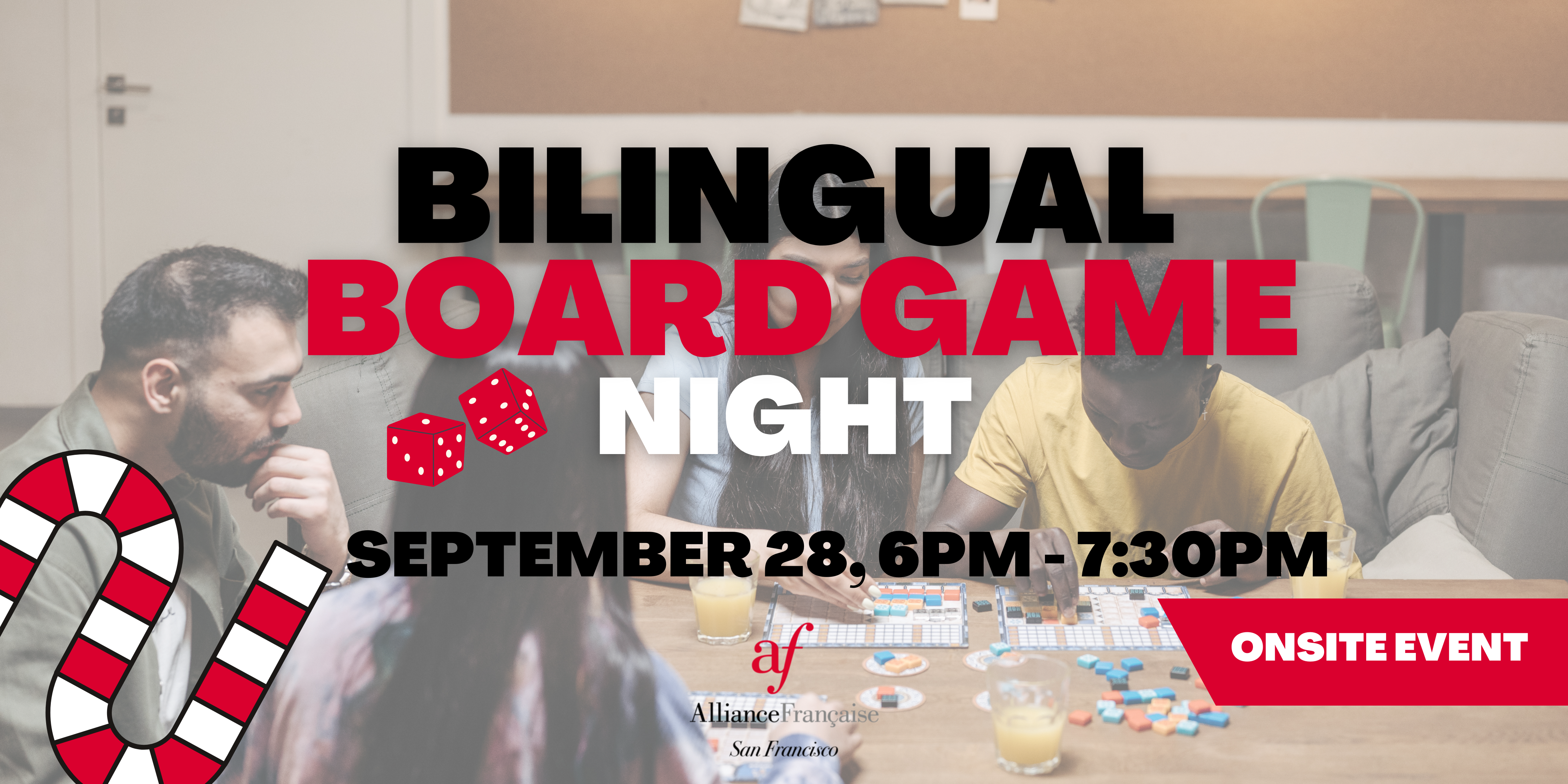 🎲 The Alliance Française de San Francisco is inviting you to a Bilingual Board Game Night in French! Come practice your French, "Clean Your Minds", release stress, renew energies and meet new people in an evening that is all fun, games and French! 🎲
