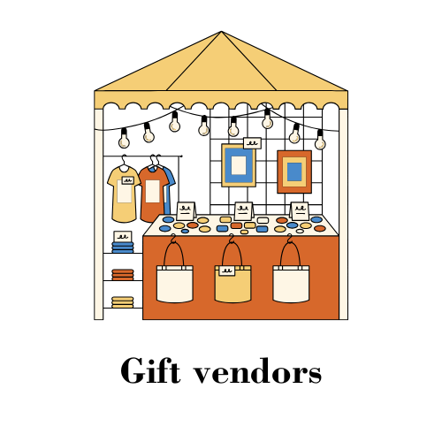 Gift vendors (arts and crafts, food items to gift i.e. honey, chocolate,...)